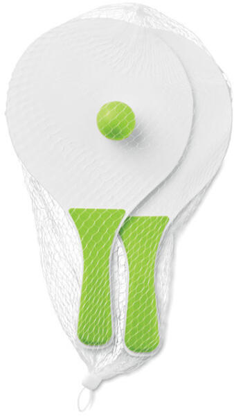 Kicsi strandtenisz szett. 2 MDF ütővel és egy puha labdával.
